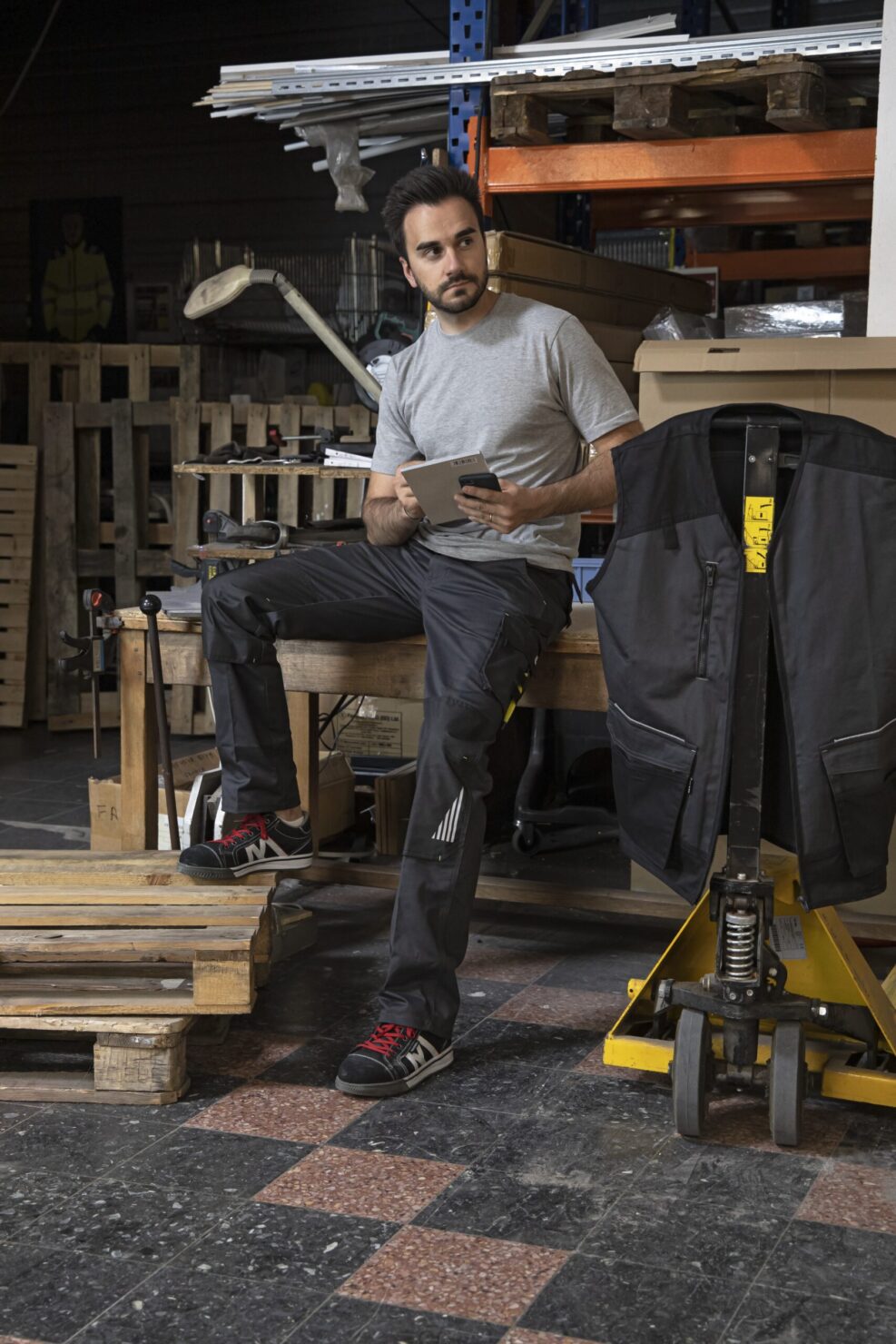 Ce pantalon est destiné à protéger les artisans du bâtiment et de l’industrie, il est composé d’un mélange de Sergé, de coton, de polyester et d’élasthanne.