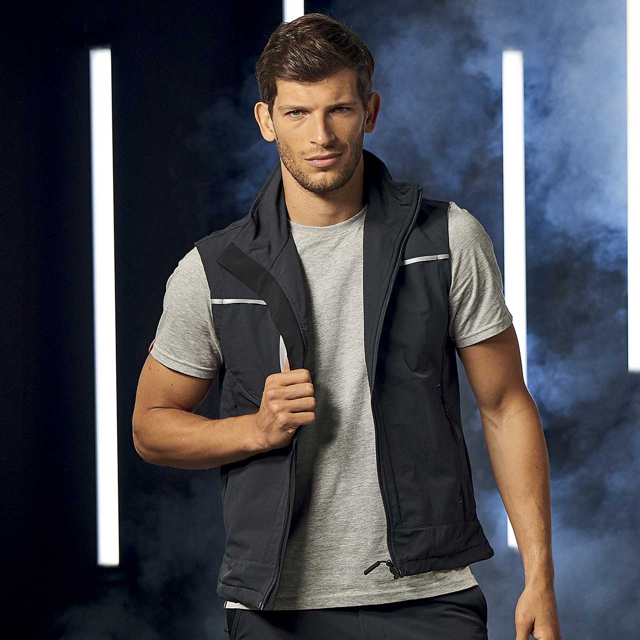 De plus, la fermeture centrale est à glissière et est hydrofuge. Pour un maximum de visibilité, le gilet est pourvu d’inserts en Reflex et d’un ruban réfléchissant à l’arrière du col.