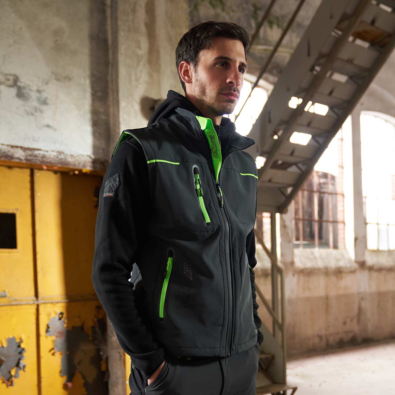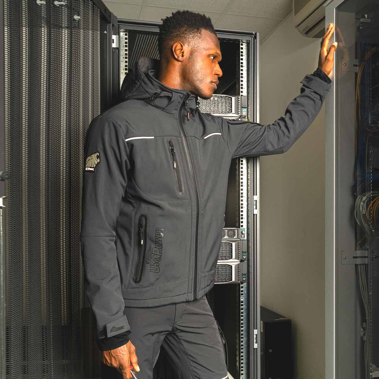 La veste SPACE en softshell est imperméable, respirante et coupe-vent grâce à sa membrane U-Tex.